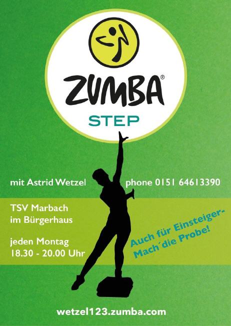 Seit einigen Monaten gibt es Step als ZUMBA Step, d.h. unsere Choreos basieren auf lateinamerikanischen Tänzen, wie Merengue, Salsa, Cumbia, Soca, Mambo aber auch Reggaeton und Swing. Schnuppern ist jederzeit möglich und vielleicht macht DIR das neue Programm genaues viel Spaß wie uns.